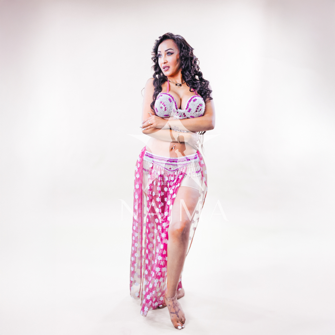 بدلة رقص قطعتين مع قطعة ثالثة عصا رقص بلون البدلة (وردي، احمر، ازرق)
