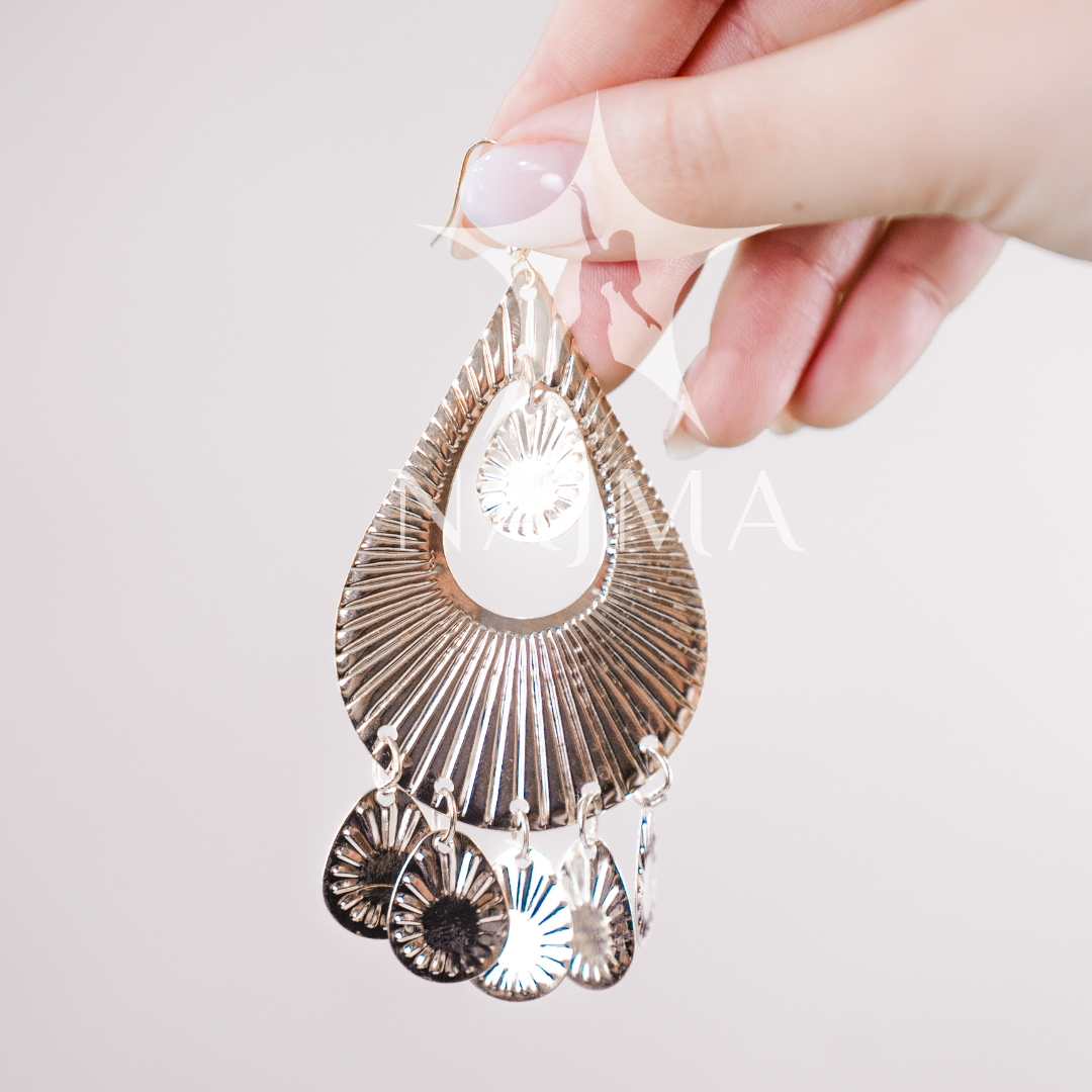 تراجي بيضوية مع ليرات معدنية متوفرة باللون الذهبي فقط